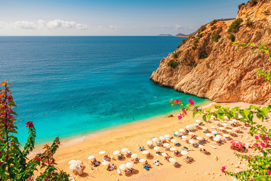 Kaputaş Beach is one of the most famous beaches in Turkey and one of the most photographed coastal spots on the Mediterranean. Located between Kaş and Kalkan in Antalya Province, this small but stunning beach is known for its deep turquoise water, dramatic cliffs, and golden sand.
